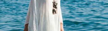 Ampio poncho bianco in cotone garzato con impreziosito con dettagli in pizzo. Pezzo unico.